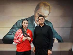 Başkan Yılmaz, Avrupa rekortmeni Büşra Çan'ı ağırladı