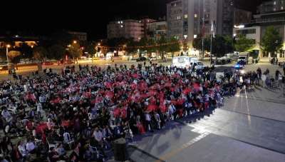 Çorum'da yüzlerce vatandaş ellerindeki Türk bayraklarıyla '12 Dev Adam'ı destekledi