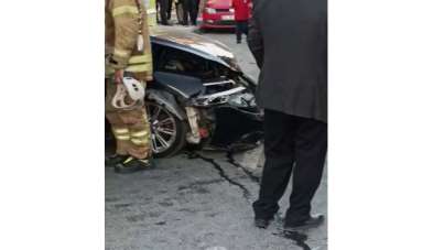 Tünelde feci kaza: Aracın motoru metrelerce ileri savruldu, hız kadranı 200'de takılı kaldı