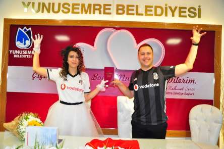 Manisa'da fanatik bir öğretmen çift, gelinlik ve damatlık yerine tuttukları takımlarının formasını giyerek nikah masasına oturdu. Özel bir lisede öğretmenlik yapan genç çift, bundan 1 yıl önce tanıştı. Fizik öğretmeni İlteriş Yurttürk ve matematik öğretmeni Merve Bozoğlu'nun birbirlerine olan sevgisi aşka dönüştü. Evlenmeye karar veren genç çift, çocukluk hayallerini gerçekleştirdi. Nikah tarihleri için Beşiktaş'ın 116. yıl dönümünü bekleyen çift, Beşiktaş formalarıyla nikah masasına oturdu. Yunusemre Belediyesi Evlendirme Memuru Meral Tuna tarafından kıyılan nikah sonrası yeni evli çift, kartal pozu vermeyi de ihmal etmedi.