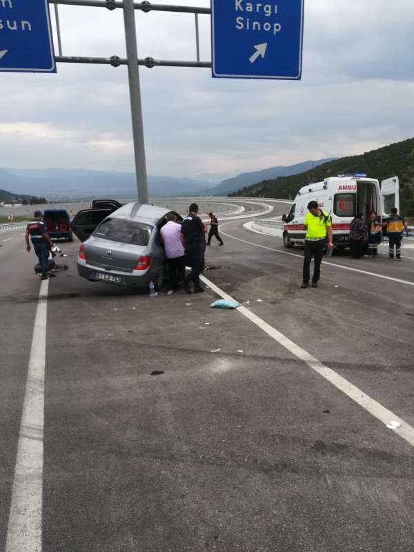 Çorum’un Kargı ilçesi'nde bir otomobilin bariyerlere çarpması sonucu 3 kişi yaralandı.