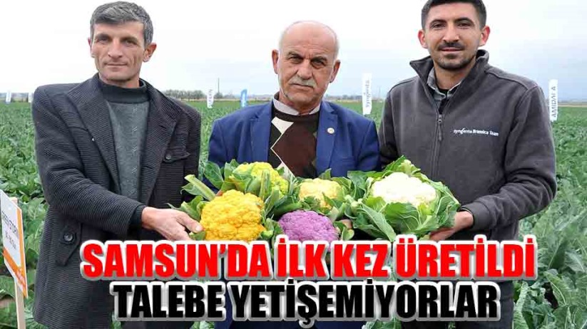 Samsun'un Bafra Ovası'nda ilk kez üretilen rengarenk karnabaharlar hem göze hem de mideye hitap ediyor. Sarı, turuncu, mor ve yeşil karnabaharlar hem şaşırtıyor hem de yoğun talep görüyor.