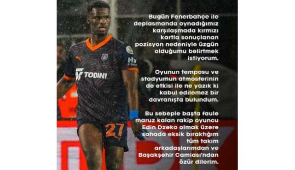 Fenerbahçe maçında kırmızı kart gören RAMS Başakşehirli futbolcu Ousseynou Ba, Edin Dzeko, Başakşehir camiası ve takım arkadaşlarından özür diledi.