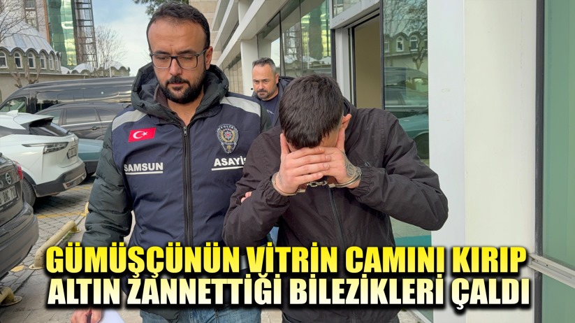Samsun'da bir gümüşçünün vitrin camını kırarak, altın zannettiği 3 bileziği çalan şahıs yakalanarak tutuklandı.