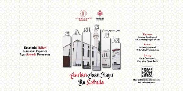 Kültür ve Turizm Bakanlığına bağlı olarak faaliyetlerini sürdüren Vakıflar Genel Müdürlüğü, 'Asırları Aşan Hayır Bu Sofrada' temasıyla Ramazan ayı boyunca Türkiye genelinde ücretsiz iftar sofraları kuracak. Vakıflar Samsun Bölge Müdürlüğü koordinesinde Samsun, Ordu ve Sinop'ta belirlenen noktalarda binlerce vatandaş aynı sofrada buluşacak. Türkiye genelinde 25 Bölge Müdürlüğü aracılığıyla gerçekleştirilecek organizasyon kapsamında, ihtiyaç sahipleri başta olmak üzere vatandaşlara her gün ücretsiz iftar yemeği sunulacak.