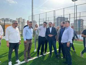 Karaköy'e yapılan halı saha çalışmalarında sona gelindi