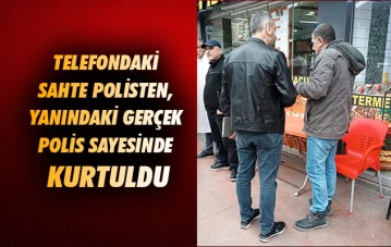 Telefondaki sahte polisten, yanındaki gerçek polis sayesinde kurtuldu
