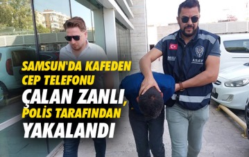Samsun'da kafeden cep telefonu çalan zanlı, polis tarafından yakalandı
