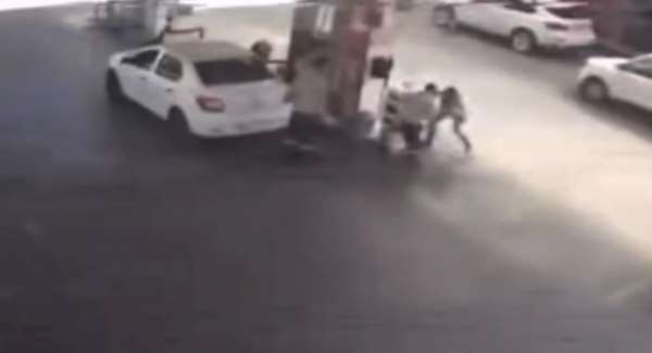 İstanbul Arnavutköy'de Petrol Ofisine ait bir akaryakıt istasyonunda, pompa görevlisi işten atılma sebebi olarak gördüğü mesai arkadaşını bıçakladı. O anlar güvenlik kamerası tarafından böyle görüntülendi.