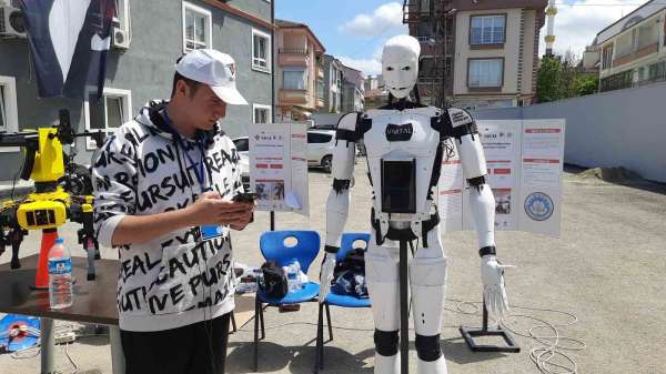 Samsun'un Vezirköprü ilçesinde düzenlenen TÜBİTAK 4006 Bilim Fuarı'nda, lise öğrencileri tarafından tasarlanan insansı robot ve robot köpek, ziyaretçilerden yoğun ilgi gördü.