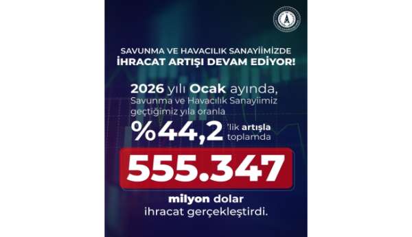 Ocak ayı ihracat verilerine ilişkin bilgi veren Görgün, 'Savunma ve havacılık sanayiimiz, 2026 yılı ocak ayında 555,3 milyon dolarlık ihracat gerçekleştirerek, geçen yılın aynı dönemine göre yüzde 44,2 oranında artış kaydetmiştir. Bu güçlü performans, sektörümüzün küresel pazarlardaki rekabet gücünü ve sürdürülebilir büyüme kapasitesini bir kez daha ortaya koymuştur. Elde edilen bu sonuç; yüksek katma değerli, ileri teknolojiye dayalı ürün portföyümüzün, sahada kendini kanıtlamış sistemlerimizin ve güvene dayalı uzun vadeli iş birliklerimizin somut bir yansımasıdır. Savunma ve havacılık sanayiimiz, Türkiye'nin genel ihracat performansına stratejik katkı sunmaya kararlılıkla devam etmektedir' değerlendirmesinde bulundu.