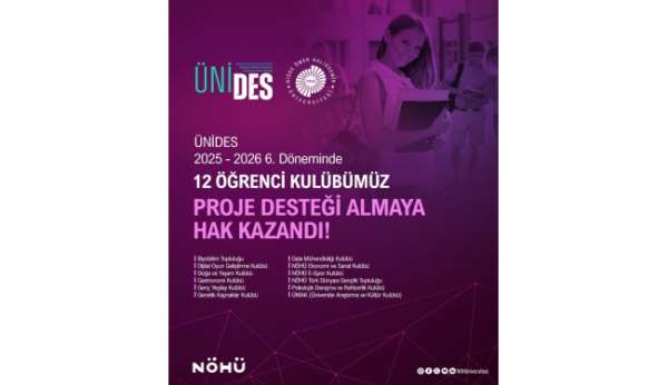Gençlik ve Spor Bakanlığı tarafından yürütülen Üniversite Öğrenci Toplulukları İş Birliği ve Destek Programı (ÜNİDES) 6. dönem başvuruları kapsamında Niğde Ömer Halisdemir Üniversitesinden 12 öğrenci kulübü destek almaya hak kazandı.