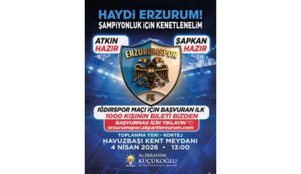 AK Parti Erzurum İl Başkanı İbrahim Küçükoğlu, şampiyonluk yolunda mavi-beyazlı takıma destek içinde yola çıktıklarını ifade etti. 4 Nisan 2026 günü oynanacak Erzurumspor FK- Iğdırspor maçı öncesi Havuzbaşı Kent Meydanı'nda toplanılacağı ve bin kişilik hediye maç bileti kazanmak isteyenlerin; erzurumspor.akpartierzurum.com adresine başvurmaları gerektiği hatırlatıldı.