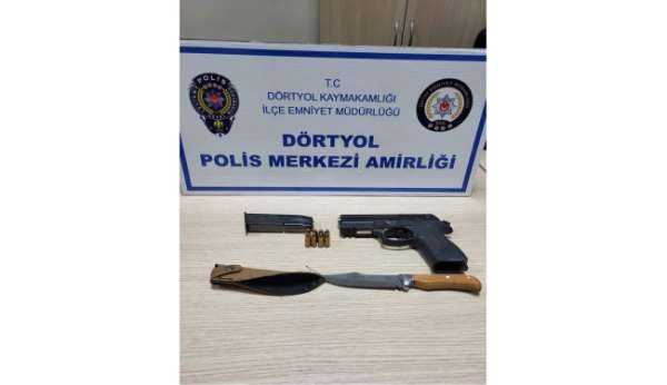 İl Emniyet Müdürlüğü görevlilerince kentte asayişin sağlanması amacıyla çalışmalar aralıksız sürüyor. Yürütülen çalışmalar kapsamında Dörtyol ilçesi Numune Evler Mahallesi'nde durumundan şüphelenilerek durdurulan A.E.K.'nın yapılan üst aramasında 1 adet tabanca, 1 adet şarjör, 8 adet fişek ve 1 adet bıçak ele geçirildi.