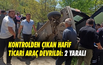 Samsun'da kontrolden çıkan hafif ticari araç devrildi: 2 yaralı