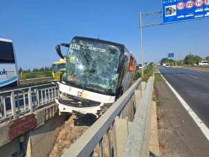 Antalya'da kaza yapan tur otobüsü, köprüden düşmek üzereyken durabildi