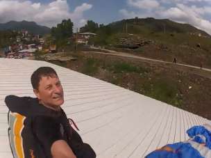 Artvin'de bir paraşütçü irtifa kaybedince bir fabrikanın çatısına indi
