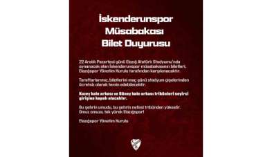 Elazığspor yönetimi, İskenderunspor maçının biletlerini ücretsiz dağıtacak