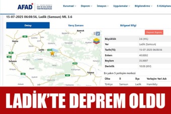 Samsun Ladik'te 3.6 büyüklüğünde deprem