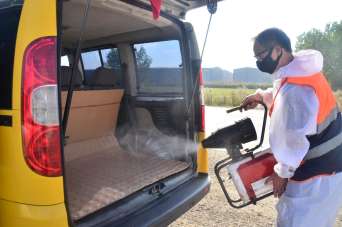Terme'de servis araçları dezenfekte edildi
