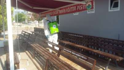 Parklar çocuklar için dezenfekte ediliyor