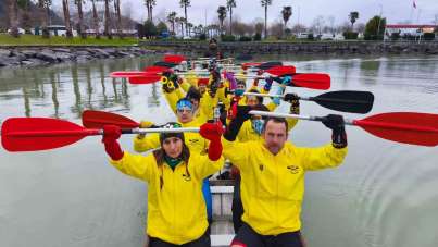 Renkli çoraplarla kürek çekip, Down sendromuna dikkat çektiler