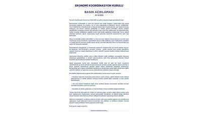 Ekonomi Koordinasyon Kurulu: 'Enflasyonu tek haneye indirmek ve kalıcı refah artışı sağlamak hedefimiz'