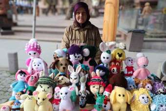El emeğiyle ördüğü bebekleri satarak ev ekonomisine katkı sunuyor