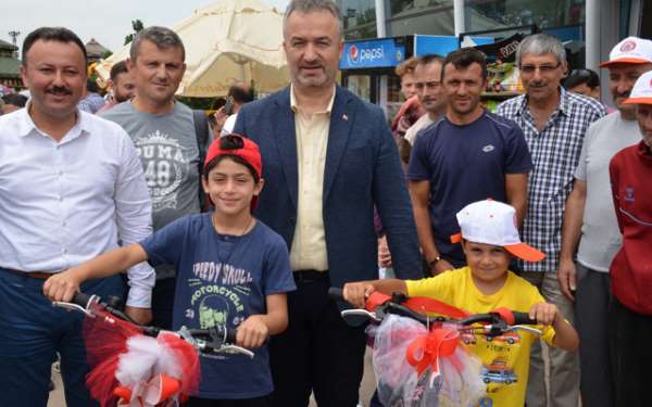 BAŞKAN TOPALOĞLU ÇEKİLİŞ İLE BİSİKLET DAĞITTI