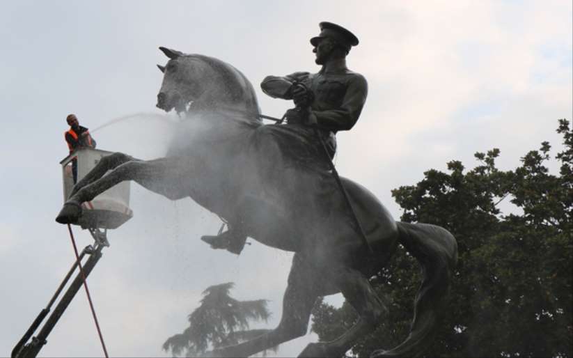 88 yıl önce dikilen heykel, bugün sabah saatlerinde Samsun Büyükşehir Belediyesi personelleri tarafından sepetli vinç yardımıyla yıkanarak 29 Ekim Cumhuriyet Bayramı kutlamalarına hazır hale getirildi.