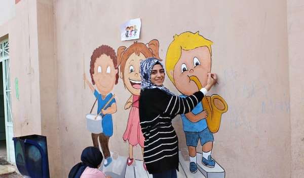 Harran Üniversitesi Eğitim Fakültesi Resim İş bölümü öğretmen adayları ve farklı bölümlerden destek veren gönüllü öğrenciler, gönüllülük esasına dayanan bir çalışma amacıyla, Eyyübiye Direkli İlkokulu öğrencileri ile buluştu.