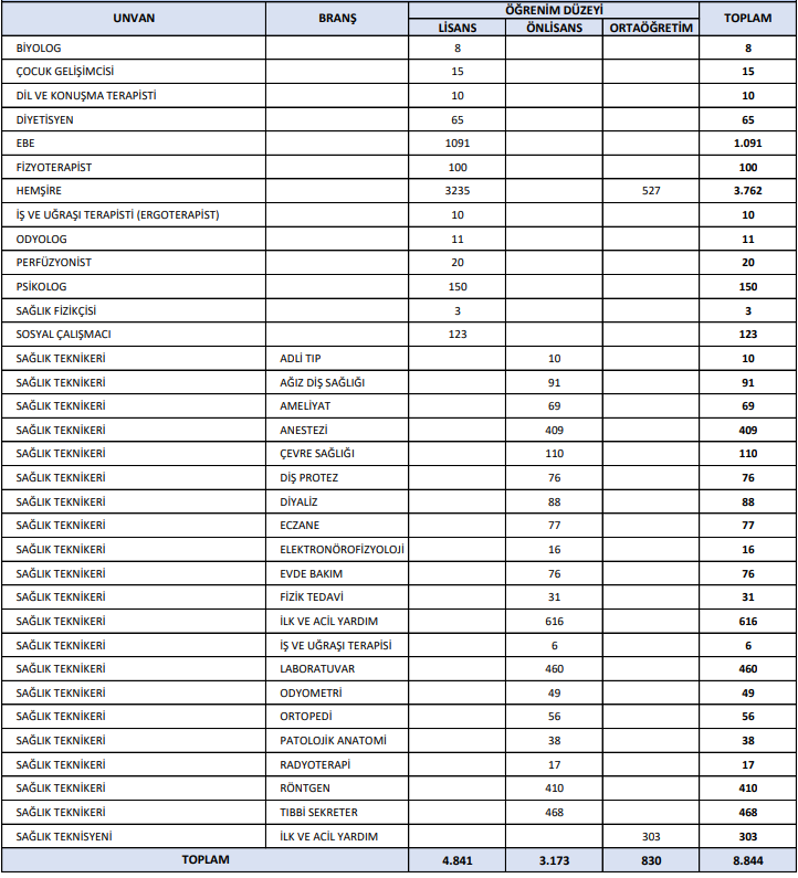 Sağlık Bakanlığı hastanelere, sağlık ocaklarına ve sağlık evlerine personel alımı yapacak. 8844 kamu personeli alımı için tercihler başladı.