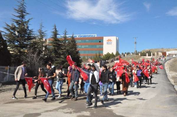 Hitit Üniversitesi Meslek Yüksek Okulu (MYO) öğrencileri İdlip'de şehit düşen 36 askerimiz için yürüyüş düzenledi.