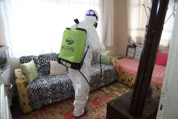 Evlerde dezenfeksiyon çalışması yapılıyor