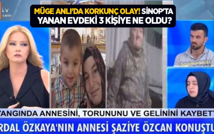Müge Anlı'da izleyenleri şaşkına çeviren bir olay konu alınıyor. Geçtiğimiz yıl Nisan ayındaSinop'un Türkeli ilçesinde tek katlı ahşap evde çıkan ve 3 kişinin hayatını kaybettiği iddia edildi.