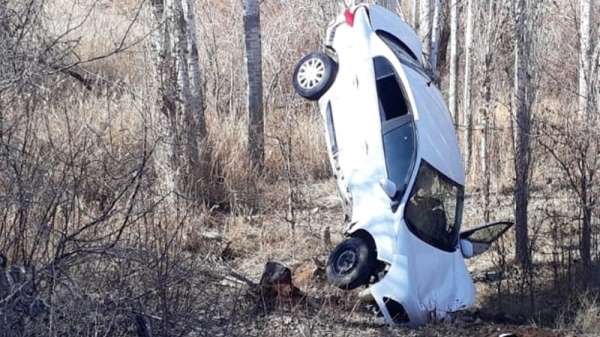 Kırıkkale'de metrelerce sürüklenen otomobilin kavak ağacına çarpıp 'amuda' kalktığı kazada sürücü yaralandı.