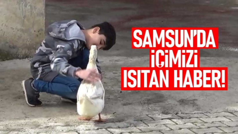 Samsun'un Alaçam ilçesinde 13 yaşındaki çocuk ile ördeğin arkadaşlığı görenleri hayrete düşürüyor.