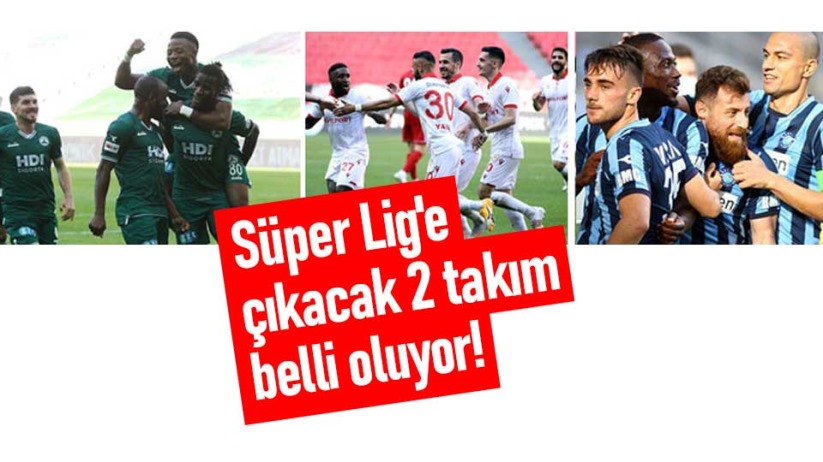 Adana Demirspor, GZT Giresunspor ve Yılport Samsunspor'un 67'şer puanla sıralandığı zirve mücadelesinde Adana Demirspor ve GZT Giresunspor bugünkü Menemenspor ve Tuzlaspor maçlarını kazandığı takdirde adlarını Süper Lig'e yazdıracak.