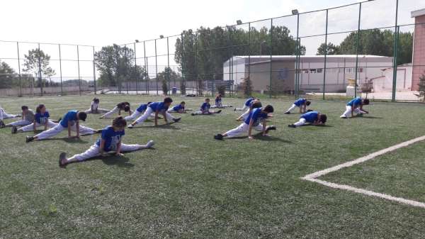 DÜZCE – Düzce'de açık havayı fırsat bilen taekwandocular sentetik cim sahada hocaları eşliğinde antrenman yaptılar.