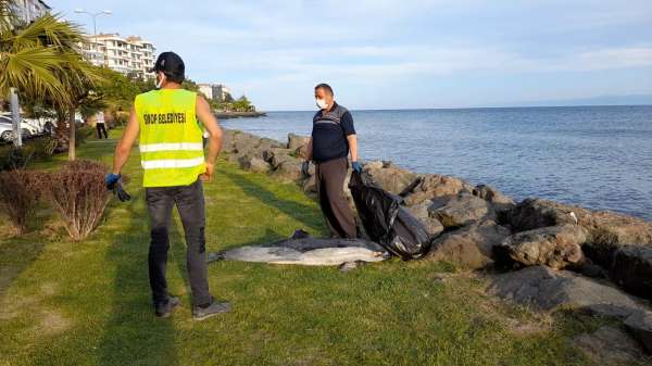 Enver Bahadır Caddesi'nde gezerken sahil şeridinde kıyıya vuran yunusu gören vatandaşlar, durumu yetkililere bildirdi. Yunusun açıkta öldükten sonra dalgaların etkisiyle kıyıya sürüklenmiş olabileceği tahmin diliyor. Ölü yunus, Sinop Belediyesi ekipleri tarafından çöp poşetine konularak bulunduğu noktadan kaldırıldı.