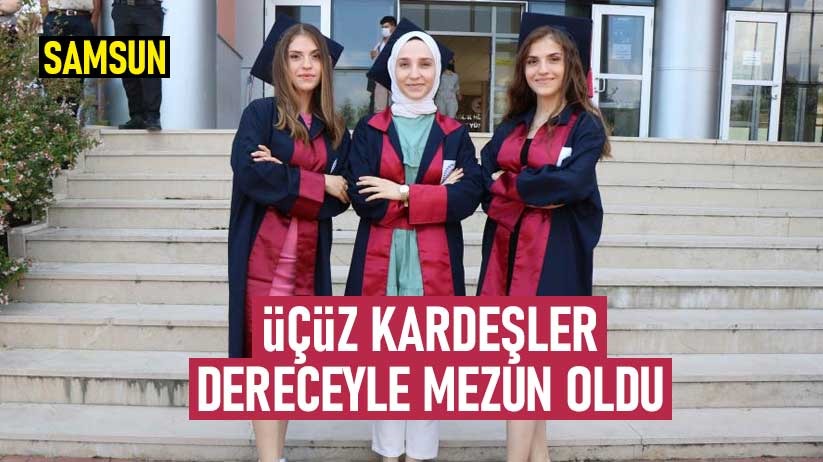 OMÜ Sağlık Hizmetleri Meslek Yüksekokulu’ndan mezun olan öğrencilerden dereceye girenler için ödül töreni düzenlendi. Yüksekokul tarihinde daha önce görülmeyen bir olay da yaşandı. Gamze, Gizem ve Gaye Gündoğdu (20) isimli üçüz kardeşler, aynı yüksekokulu kazanıp aynı dönemde dereceyle mezun oldu. Gizem Gündoğdu yaşlı bakım bölümü 1. öğretim birincisi, Gaye Gündoğdu tıbbi dokümantasyon ve sekreterlik bölümü 1. öğretim üçüncüsü, Gamze Gündoğdu ise tıbbi dokümantasyon ve sekreterlik bölümü 2. öğretim üçüncüsü olarak eğitimlerini tamamlayıp, aynı anda mezuniyet heyecanı yaşadı.