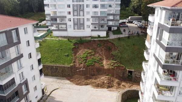 Ordu'nun Ünye ilçesinde dün akşam etkili olan yağış sonrası heyelan meydana gelen 96 daireli sitede son durum havadan görüntülendi.