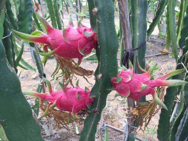 Adana'da bir baba-oğlun internette görüp 1 dönüm alana ektiği ejder meyvesi dalında kilosu 35 liraya alıcı buluyor.