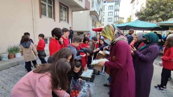 Ordu'nun Ünye ilçesinde öğrenciler, pazar alanında satış yaparak elde ettikleri geliri bir köy okulunun ihtiyaçlarında kullanacak.