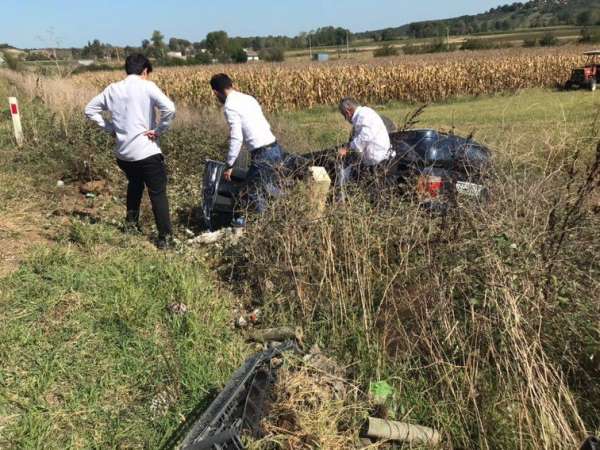 Sakarya'da düğün konvoyundaki bir otomobil şarampole uçtu. Kazada 4 kişi hafif şekilde yaralandı.