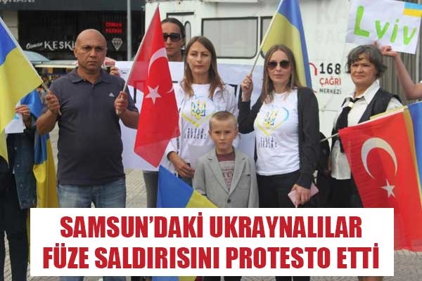 Samsun Cumhuriyet Meydanı'nda toplanan Karadeniz Ukraynalılar Derneği üyeleri son zamanlarda Rusya'nın Ukrayna'ya karşı gerçekleştirdiği füze saldırılarını protesto etti.