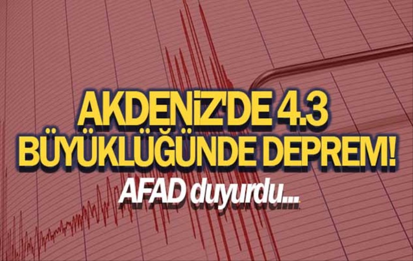 Akdeniz'de Mersin açıklarında 4,3 büyüklüğünde deprem meydana geldi. Deprem nedeniyle panik yaşayan vatandaşlar sokağa çıktı.