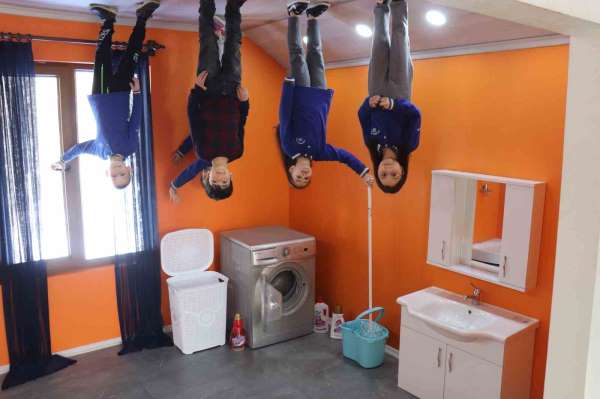 Samsun'un Canik ilçesinde açılan 'Ters Ev' çocuklar başta olmak üzere gençlerin ve yetişkinlerin yoğun ilgisini çekiyor. Bütün eşyaların ters olduğu ev baş döndürüyor.