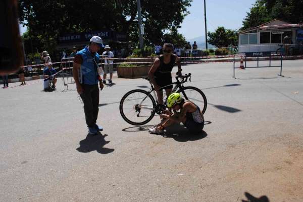 Isparta'nın Eğirdir ilçesinde bugün başlayan Triatlon Türkiye Kupası'nda bisikletinin lastiği patlayan kadın sporcu düşüp yaralandı. Kaza sonrası gözyaşlarına boğulan kadın sporcuya ilk müdahale görevliler tarafından yapılırken elleri titreyen sporcu suyu bile güçlükle içebildi.