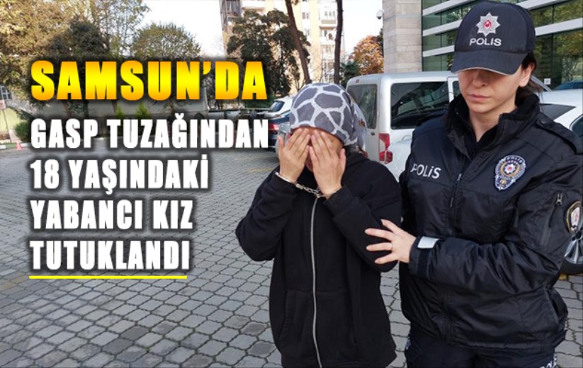 Samsun'da tuzak kurdukları genci kafasından bıçakla yaralayarak spor çantasını gasp eden 18 yaşındaki yabancı kız tutuklanırken, yanındaki yabancı erkek arkadaşı ise kayıplara karıştı.
